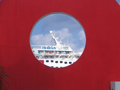 today was our first stop in cozumel. the engines got very loud and our room started shaking around 07:00. it wasn’t too bad but i’m pretty certain that never happened on the glory (maybe, just maybe, i’ll actually write up a travel log for that cruise someday, although it would probably just be pix because it’s been two years and i don’t remember many details). while i’m at it, i might as well review the holiday a bit. it is a noticeably smaller and older ship than the glory. it is clean and in good repair but there is not as much to do. all in all it doesn’t bother me too much but it is much noisier and the motion is much more exaggerated (really, i never felt any motion on the glory at all but nobody can walk straight on this ship). i’ve seen many people walking around with patches behind their ears and i’m pretty sure someone like my cousin, bro-n-law, or MIL would have a rough time on it. /review