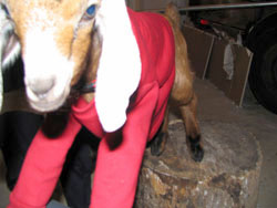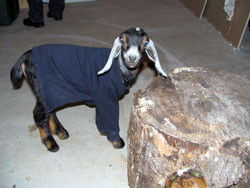A garage, a tree stump, and a bar - what more does a goat need? | ||