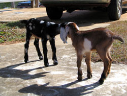 We went to Wedowee for a visit and I was pleasantly surprised to find out that we were having babies. When we got there, the first momma had just had her last one (she birthed three). This weekend, there happened to be four mommas in labor. I was priveledged enough to assist in midwifing the mommas by comforting them and letting them rest their heads in my lap while they were having their contractions. I also was in charge of getting the babies out to exercise their legs the day after they were born. Shane was the delivery doctor. The first momma gave birth Friday afternoon, the last momma gave birth Sunday morning - a long weekend of labor. It was a fun experience. A dirty, messy, nasty experience, but fun nonetheless. At the end of the weekend, we had nine babies! And boy was I tired.