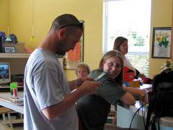 | Julie waves for the camera. |
