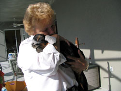 Rhena loving on Scamp. |