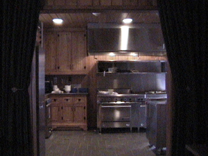 Looking into the kitchen from the dining/banquet hall. |