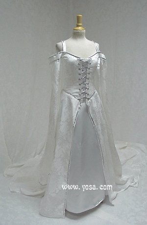 It's a silver brocade over silver satin. It is almost exactly what I had pictured in my mind.