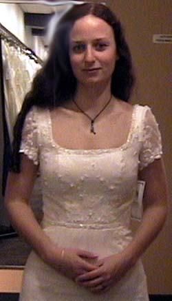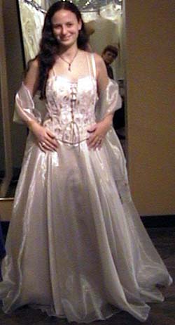 This was a traditional gown, but it was absolutely beautiful on me. Jonna started crying when I came out of the dressing room. I wish the full length pic had come out. It would be so great in silver!