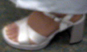 Showing off shoes. | Still showing off shoes. | With shawl. |