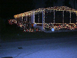 Dad spends a lot of time putting up lights and proudly sent me proof of his labor. Can you find the mouse? |