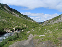 Wary ptarmigan chick. | Savage River valley. | Crossing Savage River. |