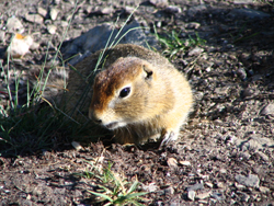 Don't we look adventurous? | Looking straight down at the sheer drop to the river from this 12 inch trail. | Chubby ground squirrel. |