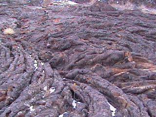 Pahoehoe or rope lava, the smooth flowing part. | Very tall lava. |
