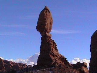 Petrified dunes with La Sal Mountains in distance. | The Balanced Rock. |