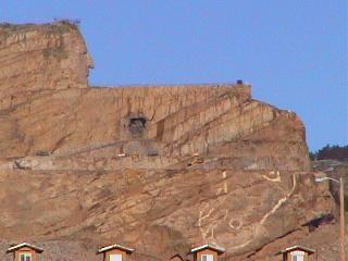 Crazy Horse Memorial so far. It will be completely three dimensional. You can see the outline of the not-yet-carved horse's head. |