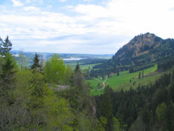 Schwangau Valley from hiking trail. Neuschwanstein from hiking trail.