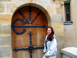 Upper courtyard. Randal and me. Me posing with a beautiful door.