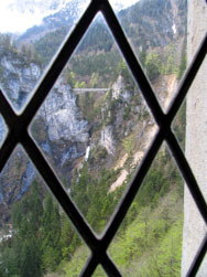 Hohenshwangau seen from interior window. View of Mary's Bridge and waterfall from the king's bedroom.