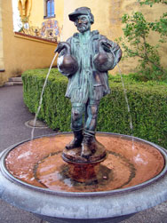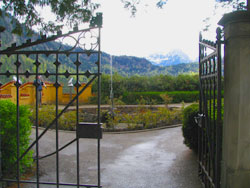 Randal at Hohenschwangau. Gate to fountain. Swan fountain.