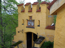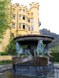 Lion fountain. Coat of Arms. Hohenschwangau turet.