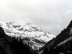 Looking up at the Alps in Switzerland. |