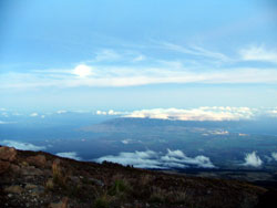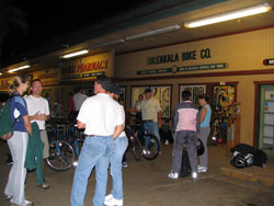 Sunrisers/Bikers waiting at 0330. | Full moon over Haleakala volcano. | |