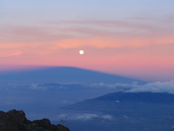 Full moon setting with shadow of Haleakala volcano cast from rising sun. | ||