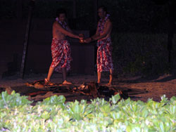 | Getting ready to unearth the pork at Germaine's Luau. | ||
