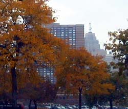 Foliage in downtown Detroit, MI. | Downtown Detroit foliage. | Detroit skyscraper. |